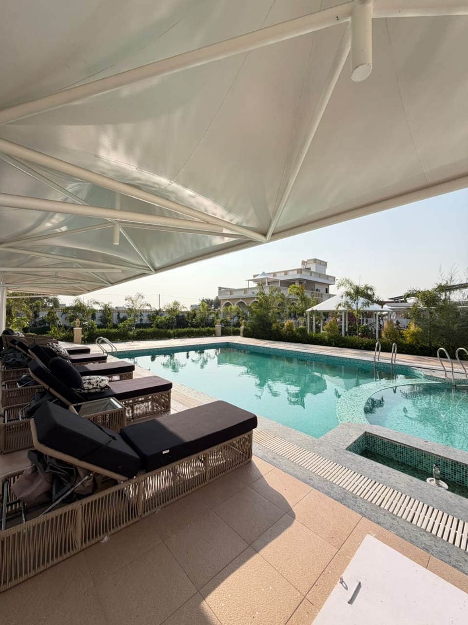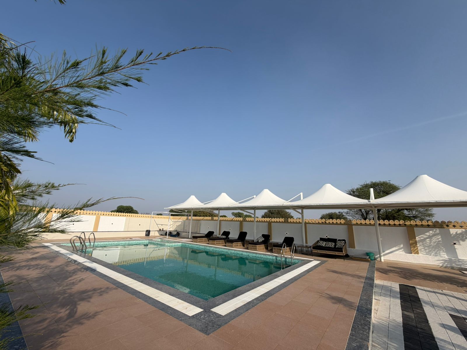 Black Bear Royal Haveli Farm offers a 20×40 ft pool, perfect for relaxing and poolside fun,